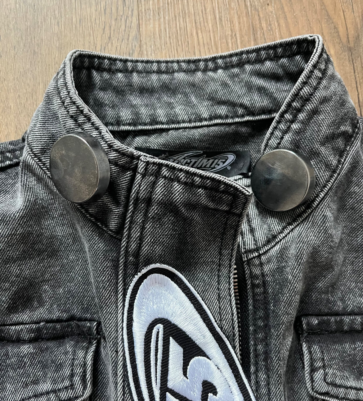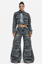 Material & Wash: Acid-washed black denim with a worn, lived-in texture that gives it a raw, mechanical edge without feeling distressed or sloppy.